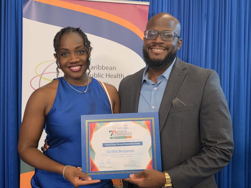 Dr. Benjamin’s winning paper, titled “Primary Care Patients’ Awareness and Perceptions Toward Medicinal Cannabis in Barbados,” examined the gap between policy and practice nearly six years after Barbados passed the Medicinal Cannabis Industry Act in 2019. The study surveyed 404 adult patients across all nine government polyclinics in Barbados, with a notable 79 percent response rate, and produced what is believed to be the first regional baseline measurement of patients’ awareness, perceptions, and clinical engagement on the subject of medicinal cannabis.